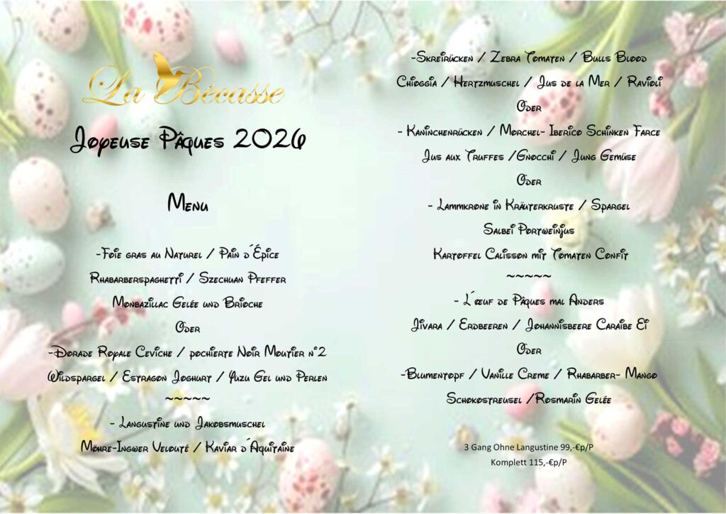 Für nicht abgesagte Sitzplätze bis 24 Stunden vorher erlauben wir uns eine Unkostenpauschale von 30,00€ pro Gedeck in Rechnung zu stellen.